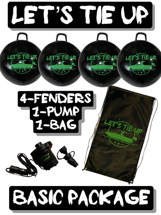 Let's Tie Up XL inflatable fenders can inflate to a 28" diameter. Soft but tough bumpers that won't damage your gel coat. Inflate/Deflate each one within 90 seconds. Our fenders saves a TON of storage room. A pack of fenders and all bungees when deflated, can fit in our Let's Tie Up storage bag which has a 16x30" dimensions.